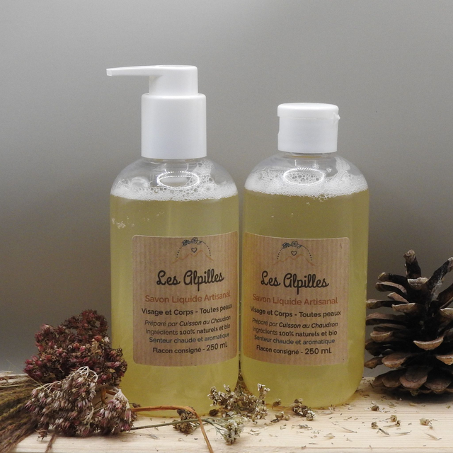 Composition (Ingredients) : Eau (Aqua), Huiles saponifiées de Tournesol oléique (potassium sunflowerseedate), de Coco (Potassium cocoate), Ricin (Potassium castorate), Sel (sodium chloride), Acide citrique (Citric acid), Huiles Essentielles* de Lavandin Grosso (Lavandula Hybrida oil), Romarin (Rosmanirus officinalis flower oil), Myrte verte (Myrtus Communis Leaf oil), Santoline (Santolina Chamaecyparissus extract), Sauge sclarée (Salvia Sclarea oil)- qui contiennent naturellement du Pinene, Linanol,Linalyl acetate, Limonene,,Terpineol, Geranyl acetate